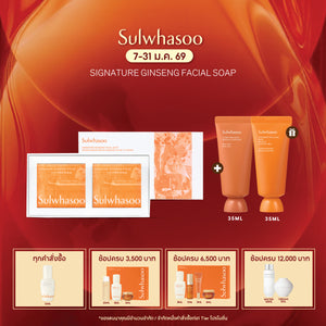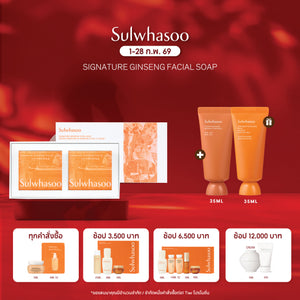 Ginseng-infused facial soap สบู่โสมสำหรับล้างหน้า ฟองนุ่มฟูละมุนดุจแคชเมียร์ SIGNATURE GINSENG FACIAL SOAP Sulwhasoo meets <INSAMJANG> ได้รับแรงบันดาลใจจากจินเส็งสปาอันหรูหรา <อินซัมจัง>(Ginseng Spa) เริ่มจ้นในยุคต้นศตวรรษที่ 20 โซลวาซูได้รังสรรค์สบู่ล้างหน้าโสมสูตรพิเศษ ผสานความอ่อนโยนและประสิทธิภาพ ในการทำความสะอาดผิวอย่างล้ำลึก สัมผัสประสบการณ์แห่งความหรูหรา ในการความสะอาดผิวของคุณ ด้วยคุณค่าของโสม ผ่านฟองสบู่นุ่มละมุนดุจแคชเมียร์ ผสานสารสกัดจากดอกโสม (Ginseng Flower Extract) มอบผิวชุ่มชื้น มีชีวิตชีวา สดชื่น หลังจากทำความสะอาดผิวหน้า เนื้อสัมผัสกำมะหยี่ ด้วยสัมผัสที่นุ่มละเอียด หรูหรา ฟองครีมแน่น เนียนนุ่ม ละมุน ทำความสะอาดสิ่งสกปรกโดยเฉพาะรูขุมขน และเครื่องสำอางได้อย่างหมดจด ผ่านการทดสอบว่าไม่ก่อให้เกิดอาการแพ้ ‘First peace’ กลิ่นที่รังสรรค์ขึ้นมา...