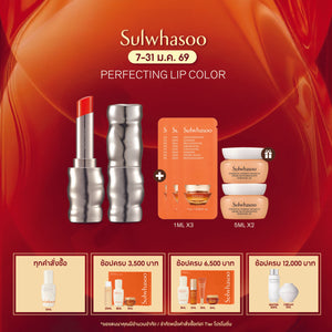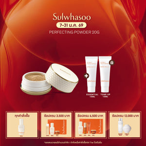 PERFECTING POWDER แป้งฝุ่นเนื้อบางเบาละเอียด เพื่อผิวงดงามอย่างเป็นธรรมชาติ มอบการฟินิชที่ช่วยเซตเมคอัพ ให้คงอยู่ได้อย่างสมบูรณ์แบบ พร้อมให้ความสบายผิวในทุกๆ วัน ด้วยสูตรไฮบริดเฉพาะของ Sulwhasoo ช่วยให้ผิวดูนุ่มละมุน สุขภาพดี และเปล่งประกายอย่างเป็นธรรมชาติ before after video before after video Perfecting Tone Correction Perfecting Powder ผสานส่วนผสมของอนุภาคแป้งเนื้อละเอียดหลากชนิดอย่างลงตัว ช่วยปรับโทนผิวให้ดูเปล่งประกายอย่างเป็นธรรมชาติ ไม่ตกร่องริ้วรอยหรืออุดตันรูขุมขน พร้อมคงความเรียบเนียนให้กับผิวสวยตลอดวัน Long-lasting perfect coverage Perfecting Powder เป็นแป้งฝุ่นที่เคลือบผิวด้วยความชุ่มชื้น อ่อนโยนและเป็นมิตรต่อผิวในทุกการใช้งาน ด้วยส่วนผสมมอยซ์เจอไรซ์เซอร์บำรุงผิว ช่วยให้เมคอัพติดทน โดยไม่ทำให้ผิวรู้สึกแห้งตึง Perfect Wearing Formula Perfecting Makeup คือไลน์เมคอัพแบบ...