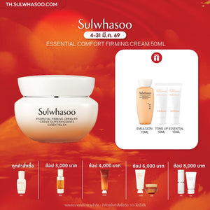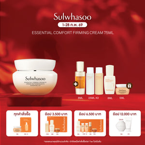 SULWHASOO'S ESSENTIAL LINE HAS BEEN RENEWED พัฒนาสูตรใหม่ทั้งไลน์ เพื่อประสิทธิภาพที่ดียิ่งขึ้น สูตรเดิมESSENTIAL COMFORTFIRMING CREAM สูตรใหม่ESSENTIAL FIRMING CREAM EX เติมความชุ่มชื้นอย่างล้ำลึก เสริมความยืดหยุ่นผิว เพื่อผิวที่ดูอ่อนเยาว์และกระชับขึ้นอย่างเห็นได้ชัด ใหม่ ESSENTIALFIRMING CREAM EX การดูแลผิวที่จำเป็นเพื่อชะลอวัย กับ 28 ปีแห่งการสร้างสรรค์และวิจัยผลิตภัณฑ์บำรุงผิว สัญญาณแรกของการศูนย์เสียความอ่อนเยาว์ผิว คือการสูญเสียความชุ่มชื้น เมื่ออายุมากขึ้น ผิวจะแห้งกร้าน หมองคล้ำ และขาดความยืดหยุ่น ไม่เต่งตึง ดังนั้น สิ่งสำคัญในการเลือกครีมบำรุงผิว สำหรับดูแลริ้วรอยในช่วงแรกเริ่ม คือการเลือกครีมบำรุงที่สามารถเติมเต็ม ความชุ่มชื้นให้ผิวอย่างล้ำลึก พร้อมทั้งช่วยเพิ่มความยืดหยุ่นให้กับผิว ได้อย่างมีประสิทธิภาพ นี่คือเหตุผลที่ Essential Firming Cream...