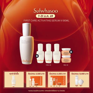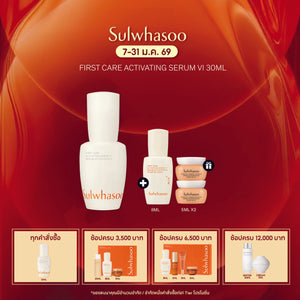 FIRST CARE ACTIVATING SERUM VI SET HOLIDAY EDITION A HOLIDAY OF UNEXPECTED DELIGHT เทศกาลแห่งความสุข ดั่งดอกพลัมที่ผลิบานสะพรั่งท่ามกลางหิมะ มาร่วมค้นพบความสุขเหนือความคาดหมายไปกับ Sulwhasoo FIRST CARE ACTIVATING SERUM VI 90 ml FIRST CARE ACTIVATING SERUM VI 8ml ESSENTIAL REVITALIZING WATER EX 15ml ESSENTIAL REVITALIZING EMULSION EX 15ml CONCENTRATED GINSENG REJUVENATING CREAM...