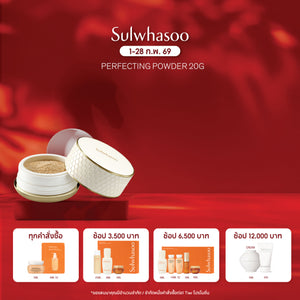 PERFECTING POWDER แป้งฝุ่นเนื้อบางเบาละเอียด เพื่อผิวงดงามอย่างเป็นธรรมชาติ มอบการฟินิชที่ช่วยเซตเมคอัพ ให้คงอยู่ได้อย่างสมบูรณ์แบบ พร้อมให้ความสบายผิวในทุกๆ วัน ด้วยสูตรไฮบริดเฉพาะของ Sulwhasoo ช่วยให้ผิวดูนุ่มละมุน สุขภาพดี และเปล่งประกายอย่างเป็นธรรมชาติ before after video before after video Perfecting Tone Correction Perfecting Powder ผสานส่วนผสมของอนุภาคแป้งเนื้อละเอียดหลากชนิดอย่างลงตัว ช่วยปรับโทนผิวให้ดูเปล่งประกายอย่างเป็นธรรมชาติ ไม่ตกร่องริ้วรอยหรืออุดตันรูขุมขน พร้อมคงความเรียบเนียนให้กับผิวสวยตลอดวัน Long-lasting perfect coverage Perfecting Powder เป็นแป้งฝุ่นที่เคลือบผิวด้วยความชุ่มชื้น อ่อนโยนและเป็นมิตรต่อผิวในทุกการใช้งาน ด้วยส่วนผสมมอยซ์เจอไรซ์เซอร์บำรุงผิว ช่วยให้เมคอัพติดทน โดยไม่ทำให้ผิวรู้สึกแห้งตึง Perfect Wearing Formula Perfecting Makeup คือไลน์เมคอัพแบบ...